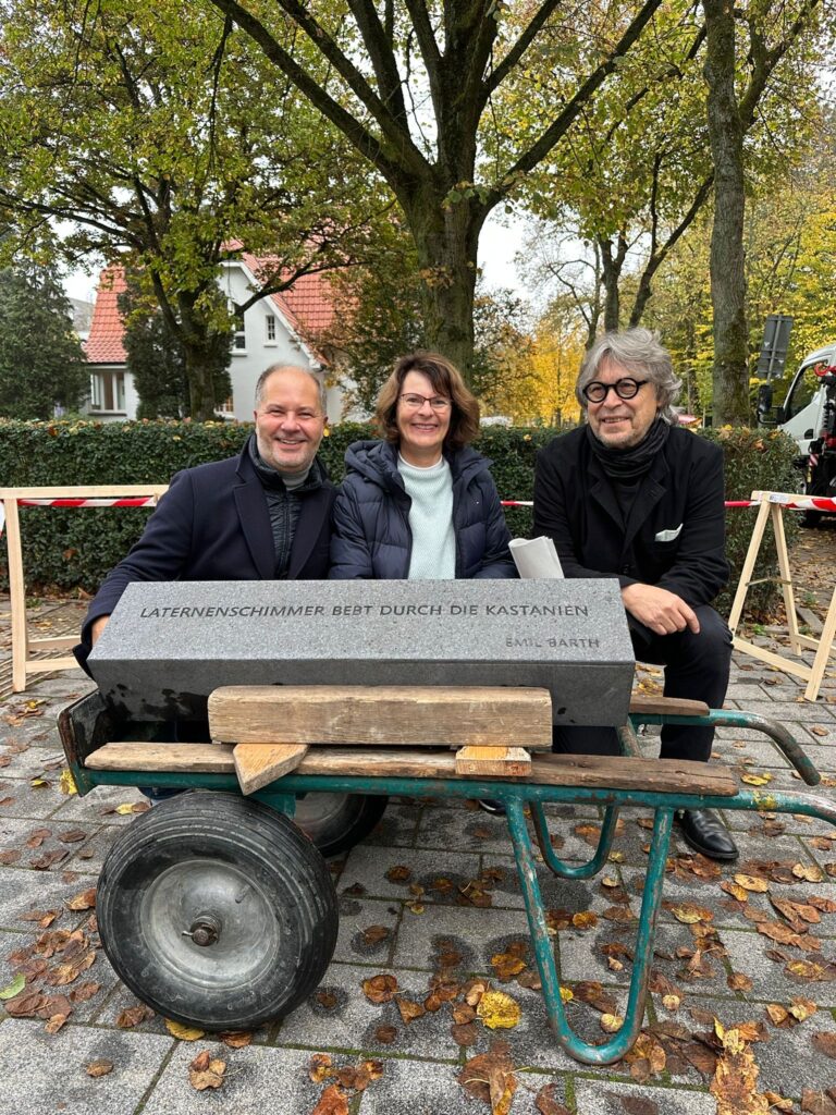 „Als fest in Haan verwurzeltes Unternehmen unterstützt EK Eduard Kronenberg GmbH gerne zusammen mit der Bürgerstiftung das anerkennenswerte Projekt des Haaner Künstlers Wolf de Haan. Ehrenamtliches Engagement für Kultur, Gemeinschaft und Lebensqualität ist ein Gewinn für unsere Stadt….“ so Ralf Kronenberg bei der Steinverlegung.